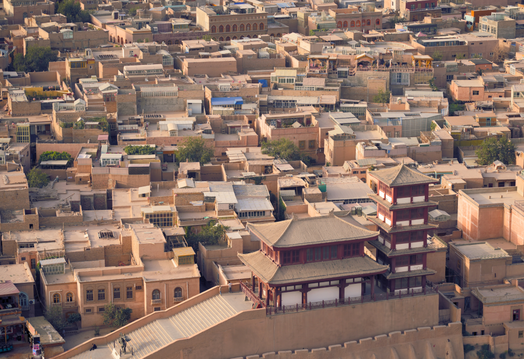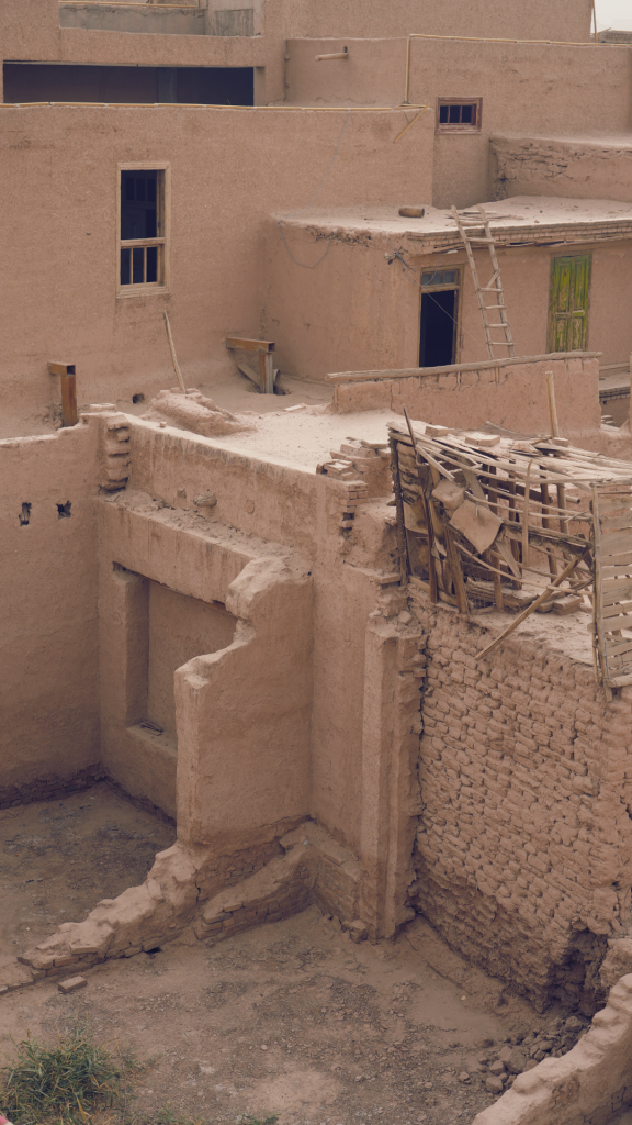 高台民居 Gaotai minju significa “abitazioni con terrazza elevate”. In inglese Gaotai Ancient Homes, fa parte del quartiere antico di Kashgar, nella parte nord-est della città vecchia. Hanno una storia di oltre 600 anni e nel corso dei secoli sono state abitate da generazioni di famiglie Uigure. Sono case antiche costruite su roccia in cui ogni nuova generazione aggiungeva, negli anni, un nuovo piano sulla base esistente. Questo sviluppo verticale ha creato un tessuto urbano molto denso con case “impilate”.